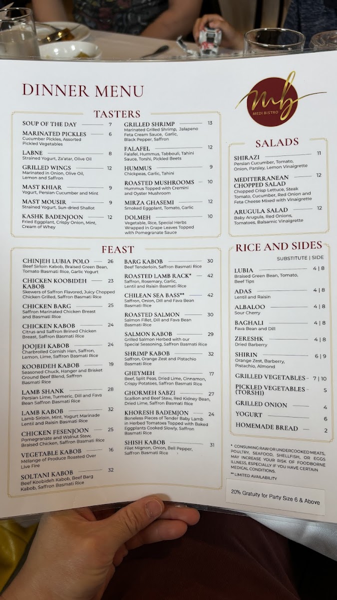 Introducing Medi Bistro, a delightful gem tucked away at 50 Main St, White Plains, NY. This Persian restaurant offers an enticing menu that showcases rich flavors and traditional fare, perfect for both novices and seasoned gourmets. Start your culinary journey with their Soup of the Day or Kashk Badenjoon, a smoky eggplant dip that will leave you craving more. The marinated pickles and Labne are must-tries, offering a tantalizing balance of tanginess and depth.